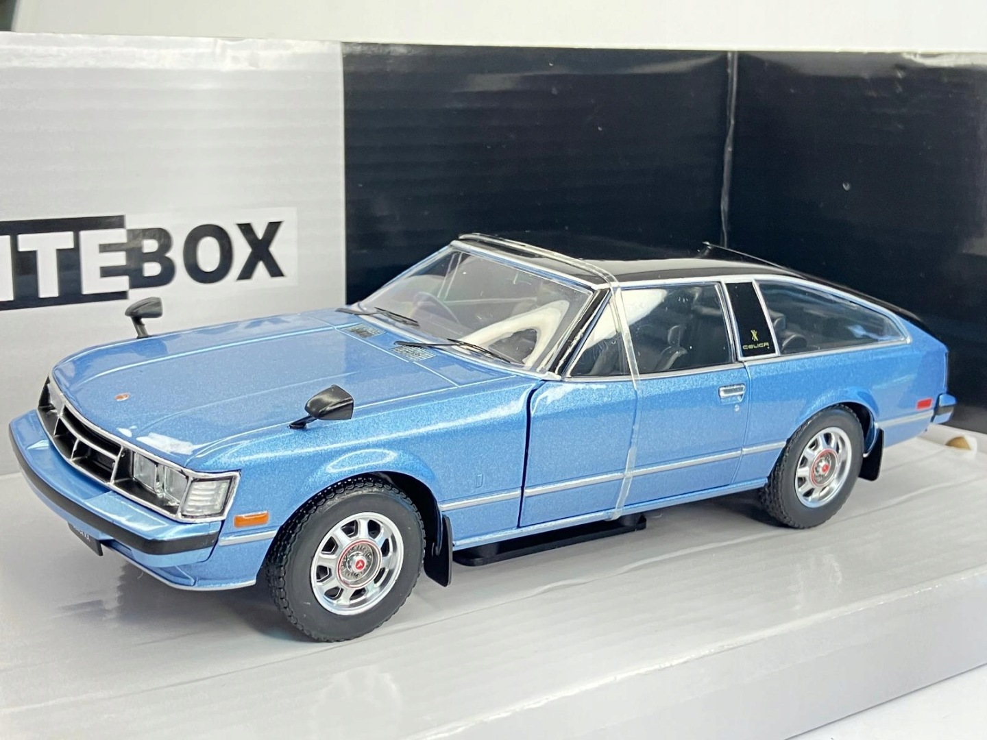 Kolekcjonerski metalowy model samochodu Toyota Celica XX RHD Coupe z 1978 roku w skali 1:24 ( 1/24 ) wykonany przez firmę WhiteBox ( White Box )